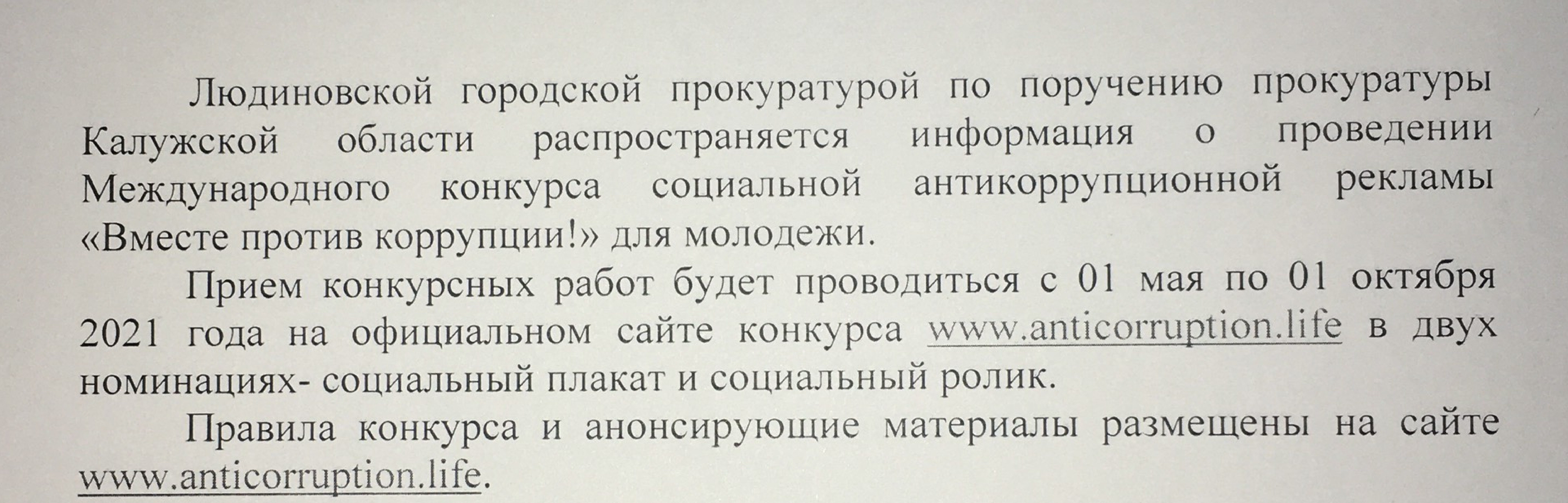 «Вместе против коррупции!» - old-Администрация сельского поселения "Деревня Манино"